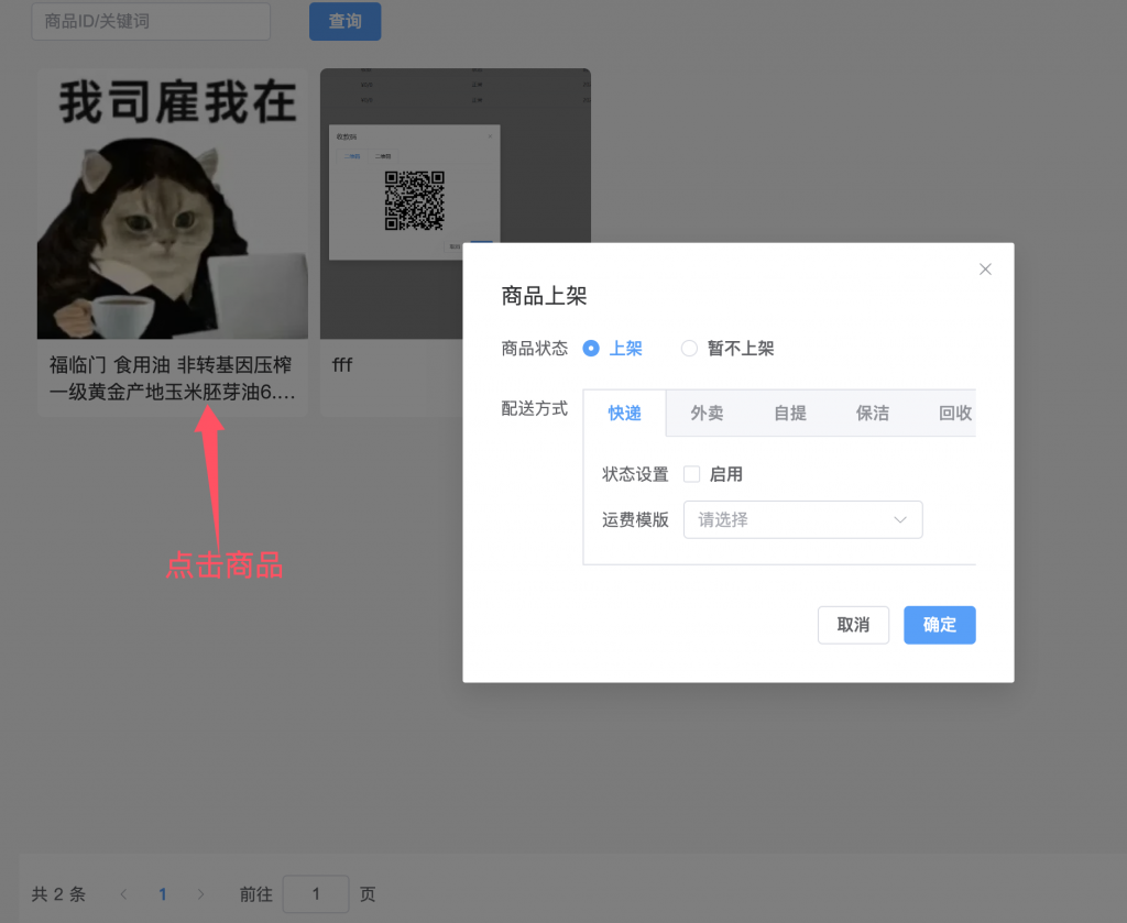 在选品页面点击需要上架的商品,在打开的弹出中设置相关信息就可以把对应商品上架到自己的商城中。